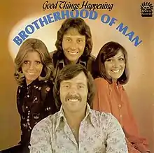 Good Things Happening is the first album released by the new lineup of pop group Brotherhood of Man. This lineup consisted of Martin Lee, Lee Sheriden, Nicky Stevens and Sandra Stevens and was to be the main lineup of the group's history and would hold for the next ten albums. It contains their first European hit "Lady" which was a hit in Belgium and the Netherlands.