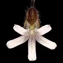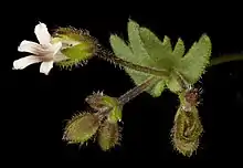 Goodenia cycnopotamica is an annual herb. The flower stalks are up to 25 cm long. Leaves oblong to oblanceolate, dentate to lyrate; lamina 2-6 cm long, 3-10 mm wide. The bracteoles are up to 15 mm long, and free. The sepals are free or nearly free, about 4 mm long, and are oblong to elliptic,[3] and attached below the ovary.[2] The pink, lilac to white corolla is 5 to 6 mm long, and hairy to almost smooth on the outside, while the inside is sometimes glabrous and sometimes not. There are no projections. The ovary has about four ovules. The capsule is globular. The seeds are wrinkled and 3 to 4 mm in diameter,[3] with a comma-shaped body and broad wings.[9]