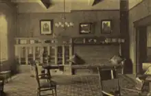 The restaurant was the corner room, lit from two sides by casement windows. It was used largely as a dining room for the residents and as a refreshment room for club meetings and entertainments. Opening out of the restaurant was the kitchen, conveniently arranged and with ample shelf and cupboard space.[4]