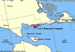 ![]() Les Cheneaux Islands highlighted in red. | |