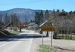 The name Gorenje is shared by several settlements in Slovenia. It arose through ellipsis of Gorenje selo (literally, 'upper village'), denoting the elevation of the place in relation to a neighboring settlement.[7] Gorenje stands about 18 meters (59 ft) higher than the neighboring villages to the west.