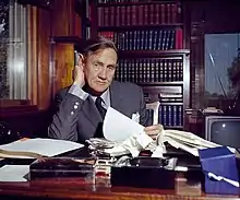 The government performed poorly in the 1970 half senate election adding to pressures on Gorton's leadership. Defence minister Malcolm Fraser developed an uneasy relationship with Gorton and in early 1971, Fraser accused Gorton of being disloyal to him in a conflict with Army officials over progress in South Vietnam.[14] Fraser was engaged in a struggle over authority with service chiefs, when in 1971, journalist Alan Ramsay published an article quoting Defence Chief Sir Thomas Daly as having described Fraser as extremely disloyal to the army and to its junior minister, Andrew Peacock. Ramsay had conferred with Gorton prior to publishing the article, but Gorton had not repudiated its contents. Fraser seized upon the report, resigned and accused Gorton of intolerable disloyalty.[5] On 9 March Fraser told Parliament that Gorton was "not fit to hold the great office of Prime Minister".[7] Fraser accused Gorton of obstinacy and a dangerous reluctance to take advice from Cabinet or the Public Service.[5]