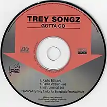 "Gotta Go" is an R&B song written by Trey Songz, Troy Taylor and Marvin Eugene Smith and performed by American R&B singer-songwriter Trey Songz released as the second single from his debut album I Gotta Make It. Released on July 9, 2005 in North America. The song peaked at number 67 on the US Billboard Hot 100, and on the R&B charts at number 11, becoming his second Top 40 R&B hit.