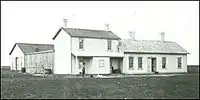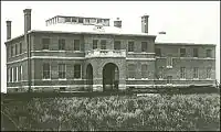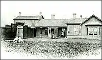 The 1883 predecessor had been assembled shortly after the decision of the North-West Territories Lieutenant-Governor Edgar Dewdney to relocate the capital from Battleford. In fact it was widely assumed that the new capital would be Troy (renamed Qu'Appelle) or Fort Qu'Appelle, but Dewdney had acquired land at Buffalo Bones which he could and did become rich by selling to settlers, and despite it being without trees, even poplar bluffs or bushes, or water apart from the slight spring run-off Wascana Creek, named it the new capital. Indeed, the street on which Government House is located was named after him. The prefabricated building material was from in eastern Canada and transported to the new site. It was a single story wooden structure consisting of two portable houses later developed into a more imposing structure. Additions were made in 1883, after which it had four bedrooms, two dressing rooms, a drawing room, a dining room, a large and small kitchen with pantry and storeroom, a front veranda and porch, and a conservatory.[1]