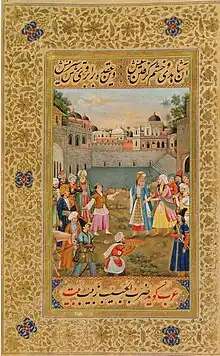 The members of Naruka clan were the rulers of Alwar in the princely state era before India became independent.[6] The rulers had a taste for fine and exquisite items.[7] With the decline of Delhi as a center for imperial patronage, many artists and artisans were employed by Alwar court. They brought Mughal aesthetics which explains the significant collection of Mughal paintings in the museum.[8] Not only Delhi artists but the rulers supported and encouraged local art and crafts. They welcomed art dealers from Delhi and built a collection of paintings (18th-19th centuries) as well as rare manuscripts in several languages such as Persian, Urdu, Arabic, and Sanskrit.[9]