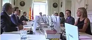 • On 4 June, two ministers renounced their posts: Salvador Victoria (Presidency, Justice and Spokesperson) and Lucía Figar (Education, Youth and Sports), who had been indicted for their alleged involvement in the Púnica case. They were replaced four days later in acting capacity by Javier Hernández Martínez and Manuel Pérez Gómez, respectively.[9]