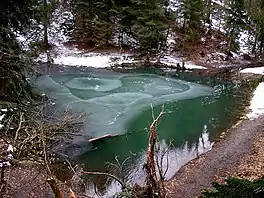 Grüner See is a lake in the Wiehen Hills of the Osnabrück Landkreis in Lower Saxony, Germany. At an elevation of ca. 145 metres (476 ft), its surface area is ca. 0.1 hectares (0.25 acres). It is around 25km north of Bielefeld.