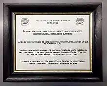 A plaque was presented and placed on Graciano Ricalde's professional residence by his nephew Arcadio Poveda. The home is now a boutique hotel in Mérida, Yucatán called Hotel Casa San Ángel.[2]