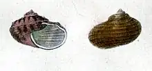 Drawing with two views of a shell of Granata japonica