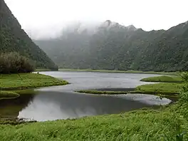 Lake of Grand Etang – in the background the waterfall of Cascade Biberon