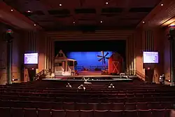 The original building underwent major renovation in 1911, and construction was completed on the current main building in 1917. The original structure was demolished in 1937 to build the auditorium, as part of The New Deal's Public Works Administration program. In 1985, construction began on a new media center, cafeteria, updated classrooms, and . The most recent addition was a fine arts wing, a new home for the department, which for the first time included a back stage and a proper set storage area, as well as a black box theater.[2]