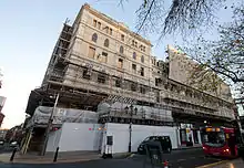 The hotel closed in 2002 and due to the risk of crumbling stonework where it remained under scaffolding and protective covers for ten years. In 2012 planning permission was granted for plans to restore the building into a luxury hotel. Works to the exterior began in October 2012 and completed in 2021.[5] The hotel reopened in May 2021 with 185 bedrooms, two new bars and a restaurant, a gymnasium, meeting rooms, collaboration areas, and event spaces.