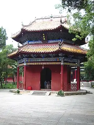 The name of Lingxing Gate means abundant talents emerge and serve the country. Usually, "Lingxing" wouldn't be used to name a temple gate. There are only two exceptions in China, and the other Lingxing Gate is in the Temple of Confucius. Kuixing Pavilion is also called "Panlong Pavilion" (literally, Circling Dragon Pavilion). It has double-eave two-curve roof and covers 139 m2. It serves as an opera stage.