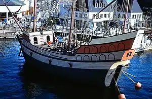 A life-size wooden replica of the vessel was featured at the Expo 67 in Montreal (1967) where she served as a floating restaurant. Following the Expo the replica was moved to Quebec City and put on static display in an artificial pond located in a city park, where she remained for at least three decades; poorly maintained. She was broken up in the same park where she sat for years.[1]