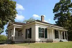 The Grandison D. Royston House is a historic house at Columbus and Water Streets in Historic Washington State Park, Washington, Arkansas. It is a single-story wood-frame structure, about 55 feet (17 m) wide and 51 feet (16 m) deep, with a hip roof pierced by two chimneys with corbelled tops. The main entry is centered under a projecting gable-roof porch, and is framed by sidelights and transom windows. The porch is supported at the front by pairs of square columns with moulded capitals and a square plinth. At the back of the house is a shed-roof addition which housed the kitchen. The interior of the main block is divided into four rooms, two on either side of a large central hall.[2]