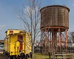 Up until June 26, 2008, the City-owned water tower sat on 0.004 acres (20 m2) of CSX owned land. The City of Grant had been paying a lease for that land for many years and CSX railroad was not interested in allowing for a state historical marker to be placed. Therefore, it was decided to move the water tower 128 feet (39 m) to the east, in front of the city-owned caboose. This would allow the city to stop paying the lease, a historical marker to be place, and a small park to be created at the site. This move cost the city $60,000, of which the Fremont Area Community Foundation awarded $50,000 in grants. The move attracted hundreds of on-lookers to the city including local television, and newspaper media. Prior to the move, The State Historical Commission was contacted, and they gave their approval and support for the project.[3] [4]