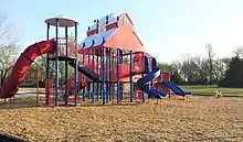 Old Town Park[27] features a playground, 9-hole disc golf course, large pavilion, and a shaded, fenced playground area specifically for toddlers. The farmer's market is a seasonal attraction that sets up at Old Town Park and features locally grown produce, meats, and goods. The Gravette skate park is a small skate park adjacent to Pop Allum Park and features quarter-pipes, hand rails, and a fun box.[28] The pool and splash park is a seasonal attraction that features a large swimming pool with slide, and 3,000 square foot splash park with water spouts, splash buckets, spraying water, and small water slides.[29] Hiwasse Park has a fire station themed playground, 1/4-mile concrete walking trail, full-size basketball court, full-size tennis court, and large green space. There is also a pavilion and restrooms.[30] Centennial Park is home to several permanent food trucks. It features a train caboose that was donated to the city by Kansas City Southern.[31] Kindley Park, named after Field E. Kindley, is near downtown Gravette. It has a half-court basketball court, a half-court tennis court, two playgrounds, a pavilion, and a T-33 aircraft on loan from the National Museum of the U.S. Air Force.[32] Pop Allum Park has seven baseball fields and four soccer fields of varying sizes. There is a small playground. On the south end of the park lies the Gravette nature trail.[33] The Gravette dog park is near downtown Gravette and features separate areas for large and small dogs.[34]