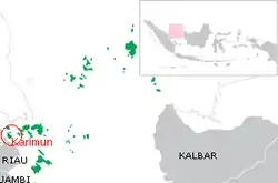 Great Karimun (Indonesian: Karimun Besar), also known as Mawas Island, is one of the islands in the Riau Islands province of Indonesia, administratively part of Karimun Regency. It lies about 37 km southwest of Singapore, 54 km west of Batam, 24 km northeast of Rangsang Island and 32 km north of Kundur Island.