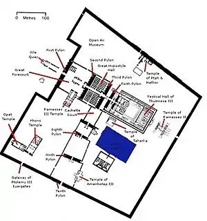 - ↑ Blyth, Elizabeth (2006). Karnak: Evolution of a Temple. Oxford: Routledge. pp. 164–165. ISBN 0-415-40487-8.