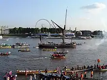 The race attracts serious racers as well as leisure rowers, making it a water-based equivalent of the London Marathon, and an interesting and colourful spectacle for the many who come to watch from the bridges and river banks. Every boat is required to carry a flag, and the prizes include one for fancy dress.