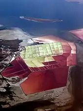 Salinity differences between the sections of the lake separated by the railroad causeway result in significantly different biota. A phytoplankton community dominated by green algae or cyanobacteria (blue-green algae) tint the water south of the causeway a greenish color. North of the causeway, the lake is dominated by Dunaliella salina, a species of algae which releases beta-carotene, and the bacteria-like haloarchaea,[63] which together give the water an unusual reddish or purplish color.[62] The dense, high-salinity water of the North Arm flows back through the causeway into the Southern portion of the lake, creating a deep brine layer there.[64]