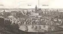 Large View of Prague from Petrin is an etching by Vaclav Hollar consisting of three sheets (collectively which have dimensions of 28 x 113.5 cm).