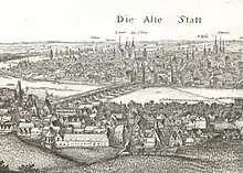 Hollar's view can be compared with two great views of the 17th century, Sadelerovým prospect, which drew on own view Filip van den Bosch, and in 1606 published a prospect by Aegidius Sadeler and Folperta van Ouden Allen from 1685.