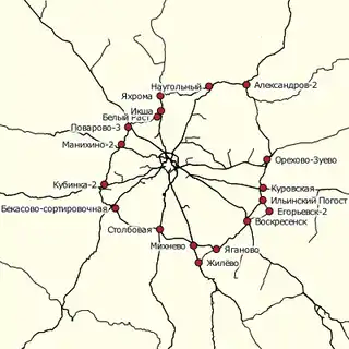 - ↑ Kirill Golovkin. "The Greater Ring of the Moscow Railway: The secret life of a forgotten suburban line". strelka.com. Translated by Alexandra Tumarkina. Retrieved 5 June 2020.