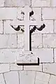 The underground chapel from the medieval era containing the spring is accessed from within the present church by descending seven steps.[9] Measuring 10 meters long, 3.3 meters wide, and 3.5 meters high, at the end of this low vaulted cavern, presumably built by the Crusaders in the 12th century, ancient Armenian tilework decorates the walls leading to a small recess.[15][16] There, below an altar with a semi-circular apse, a shaft leads down to the spring, and one can lower a metal cup to draw water.[15][16] On the wall to the east is doorway, whose entryway is blocked, and it thought that this is the stairway to which Quaresmi referred in his writings.[16]