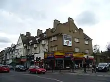 Green Lanes[3] runs from Newington Green north along the western edge of Stoke Newington, thereby forming the border between Hackney and Islington, until it reaches Manor House at the eastern edge of Finsbury Park. As it crosses the New River over Green Lanes Bridge, it enters the London Borough of Haringey, it then runs 1.4 miles (2.3 km)[4] through the neighbourhood of Harringay. From the junction with Turnpike Lane the road temporarily changes its name and runs for 1.3 miles (2.1 km)[5] through Wood Green as 'High Road', resuming its Green Lanes identity again after the junction with Lascotts Road. It then continues north for another 2.2 miles (3.5 km)[6] through Palmers Green and Winchmore Hill in the London Borough of Enfield, until it reaches the junction with Ridge Avenue and Green Dragon Lane at Mason's Corner. The northward continuation into Bush Hill at this point is now blocked.