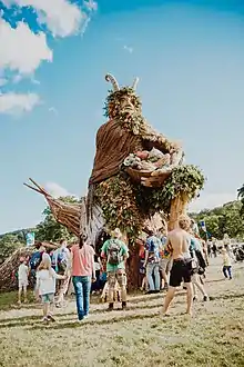 The Green Man Trust is the charitable wing of the festival, its aim is to create arts development programmes, training opportunities, science engagement and bring about positive change to Welsh communities. The current ambassador for Green Man Trust is Welsh actor and musician, Iwan Rheon,[25] whose work has included Game of Thrones, Misfits and Riviera. As of 2020, it had provided 92 community grants, supported more than 5,000 emerging artists, trained over 2,000 people and funded more than 200 science projects.[23] Training programs have included partnering with Merthyr Tydfil College and the Salvation Army in Cardiff to give training and mentoring to young adults from disadvantaged backgrounds. In 2020, the trust pledged an emergency fund supporting Welsh people affected by flooding caused by Storm Dennis.[26] and raised over £20,000.
