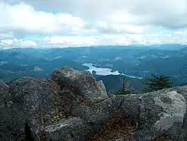 Green Peter Reservoir is a reservoir created by Green Peter Dam on the Middle Santiam River 11 miles (18 km) northeast of Sweet Home, Oregon, United States. The reservoir is approximately 10 miles (16 km) long and has a surface area of approximately 3,720 acres (1,510 ha) when full. The reservoir is used for hydropower, recreation, flood risk management, water quality, irrigation, and as a fish and wildlife habitat.[2]