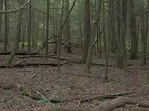 Greenbrier is underlain by a Precambrian metamorphic rock formation of the Ocoee Supergroup known as Roaring Fork Sandstone.[1] This rock type, created from ancient ocean sediments 750 million years ago, dominates the mid-level elevations in the north-central Smokies. As the elevation increases to the south, a thrust fault known as the Greenbrier Fault separates the Roaring Fork sandstone from Thunderhead sandstone and Anakeesta Formation, both of which are common along the Smokies crests. To the north, as the land flattens out (near the park boundary), another thrust fault, the Gatlinburg Fault, separates the Roaring Fork formation from a layer of siltstone, which underlies the foothills around Emert's Cove.[2]
