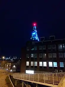 A mast in Hunslet, Leeds, broadcasting internet optically from AQL's Leeds office at the old Salem Chapel, Leeds to the Greenhouse block of flats.
