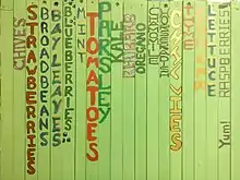 Handmade signs for edible food in Greenhouse planters.