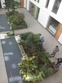 • Planters inside the courtyard and in front of the building were made of reclaimed railway sleepers.[73]