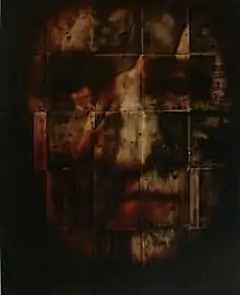 "The images are based on old photographs from Russia which Edmonson uses as raw material - selecting fragments and snippets of characteristics from different individuals, the common people, reinterpreting and creating new faces that are amalgamations of several..."[2] Edmonson's use of shadows metaphorically suggests the fragmentary nature of history and memory - parts hidden from view, others slowly emerging from which we can begin to formulate an understanding of the whole. In a 1994 artist's statement, Edmonson commented that an earlier interest in tar pits in Alberta led to his archeological interpretation of memory: "where amongst the dark matter of tar have been found the remnants of life forms, which act as a kind of physical symbol of how time displaces history and memory."[2]