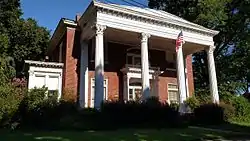 The Gregory House is a historic house at 300 South Second Street in Augusta, Arkansas. It is an elegant two-story brick Colonial Revival structure, with a two-story front portico supported by fluted Corinthian columns. The main entrance is set within this under a single-story portico supported by round columns and square pilasters, with a balcony railing above. The house was designed by Little Rock architect Frank W. Gibb and built in 1900 for Minor Gregory, president of the Woodruff County Bank and the Augusta Railroad.[2]