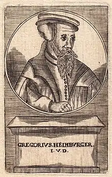 Gregory of Heimburg (Gregorius Heimburgensis) (b. at Würzburg in the beginning of the fifteenth century; d. at Tharandt near Dresden, August, 1472) was a German jurist, humanist and statesman.