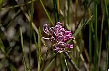 Grevillea leiophylla, commonly known as wallum grevillea,[2] or dwarf spider oak,[3] is a species of flowering plant in the family Proteaceae and is endemic to Queensland. It is a weakly erect to low-lying shrub with narrowly oblong to egg-shaped or more or less linear leaves, and clusters of pale to deep pink flowers.