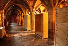 The building was let to William Monson, whose son Richard opened a school there in 1568. From 1574 the school became the Corporation Grammar School run by Lincoln City Council on the upper floor until 1900.[2] The undercroft was successively used as a spinning school which became known as the Jersey School until 1831, a Mechanics' Institute from 1833 to 1862 and as part of the Grammar School from 1862 to 1899.[2] George Boole participated in the Mechanics' Institute.[3][4]