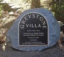 ![]() Plaque naming the Greystone Villa to the NRHP | |