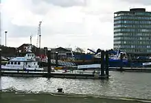 Grimsby was struck by an F1/T3 tornado on 23 November 1981, as part of a record-breaking nationwide tornado outbreak that day.[24] From the mid-1980s, the former Humber ferry PS Lincoln Castle has been moored in Alexandra Dock. She was used during this time as a pub\restaurant, but despite her design and status as Britain's last coal-fired paddle steamer, the catering no longer yielded a profit. The ship was broken up in 2010.[25] Berthed in Alexandra Dock is the Ross Tiger, the last survivor of what was once the world's largest fleet of sidewinder trawlers.[26]