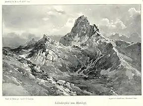 ![]() The Schlenkerspitze from the Muttekopf. Edward Theodore Compton, 1901 | |