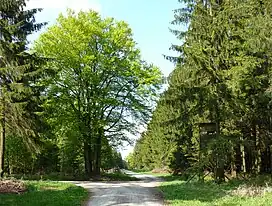 Several forest tracks and footpaths meet at the very top of the Großer Ahrensberg.
