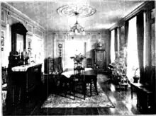 Grosserer-Societet's committee represented the merchant class equally before the government and the Rigsdag (Parliament) and acted as its external representative wherever it was necessary to safeguard its special interests. Grosserer-Societetet was from its 1817 reorganisation based in the Sundorph House prior to purchasing the Stock Exchange building, which it purchased in 1857 and supervised,[8][9] managed daily stock exchange meetings, issued responses to questions whose answers required special commercial expertise, participated in the election of the members of the Maritime and Commercial Court, held brokerage examinations, participated in the official fixing of the exchange rate and supervised the Copenhagen Stock Exchange.[1] Attached to the committee were assessment and arbitration committees for the grain trade, the feed trade, the seed trade and the butter trade, as well as a committee for setting the price quotes for Danish butter.[10] Since 1888, the committee published a detailed annual trade report. Finally, the committee managed the Brockian Business Schools (today Niels Brock Copenhagen Business College; see Niels Brock);[11] a benefit fund, to which fines assessed for not attending the stock exchange on time (spærrepenge) are donated; as well as a large number of grants.
