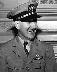 Grover Tyler wearing the ribbon bar to the newly received Airmail Flyers Medal of Honor above his pilot wings.