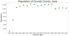 Grundy County is a county located in the U.S. state of Iowa. At the 2020 census, the population was 12,329.[1] The county seat is Grundy Center.[2] The county is named for Felix Grundy, former U.S. Attorney General.[3]