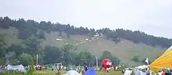 The major landmark of the festival is the stage built on the raft, in the shape of a guitar, with its fingerboard serving as a bridge to the shore. The Grushin Mountain ridge serves as natural stands for thousands of visitors. The number of visitors, as well as of participants, increased every year, starting from only 600 in 1968 to 2,500 next year, and the peak of Soviet era Grushinsky was reached in 1979 - 100,000 spectators. This record was broken in modern times: 1997 festival attracted 140,000 spectators. Similarly, the number of artists in 1969 was 20, and in 1976 it grew up to 143.
