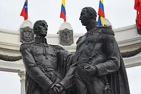 Statue in Guayaquil representing Bolívar (left) and San Martín (right) during the Guayaquil Conference